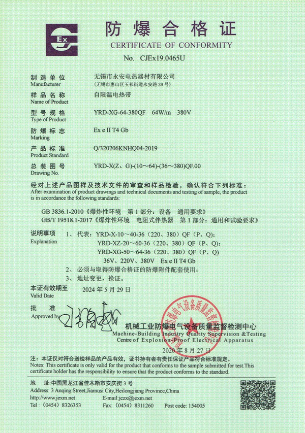 防爆证-自限温电热带